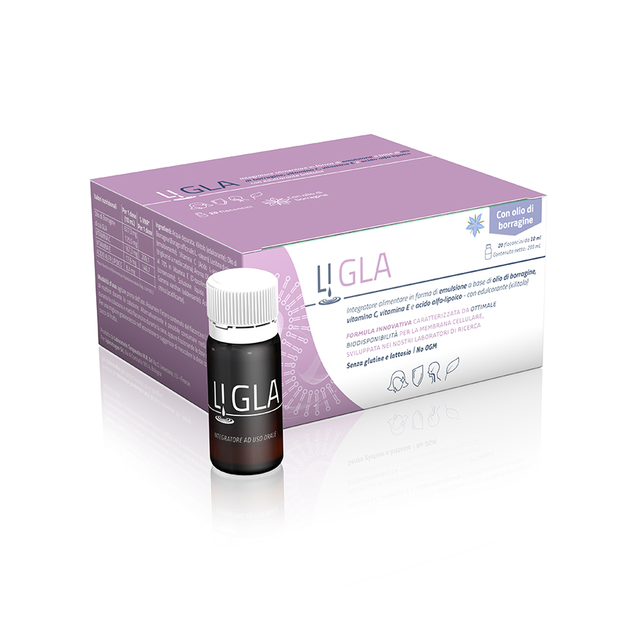 È indicato nei casi di aumentato fabbisogno o scarso apporto dalla dieta dell’acido grasso omega-6 GLA (acido gamma-linolenico). L’olio di borragine è una delle fonti naturali più ricche di GLA. Una volta assunto, il GLA viene incorporato nelle cellule e convertito in acido diomo-gamma-linolenico (DGLA), precursore di mediatori lipidici coinvolti nella modulazione della risposta infiammatoria.