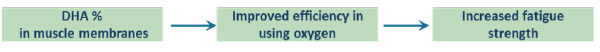 It is known that in physical activity, the organs that are most exposed to stress are the heart and muscles. From animal and human studies, it has been seen that the heart [2] and muscle [3] tissue are rich in DHA, omega-3 fatty acid, suggesting its central role in the physiology of these organs. Supplementation with fish oil (rich in DHA) has been shown to reduce heart rate and oxygen consumption used during submaximal effort (anaerobic threshold) in professional cyclists, with an increase in fatigue resistance [4].